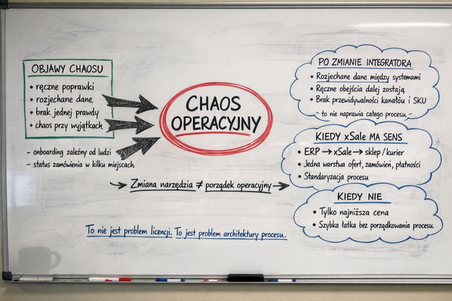 Chaos operacyjny e-commerce nie znika po podmianie integratora. Sprawdź, kiedy problemem jest proces między ERP, sklepem, marketplace i logistyką oraz kiedy xSale ma realny sens.