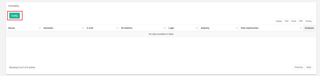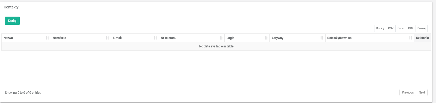 - Oddział – tutaj można dodać odziały po stronie kontrahenta, a później do tych oddziałów można przypisać osoby kontaktowe