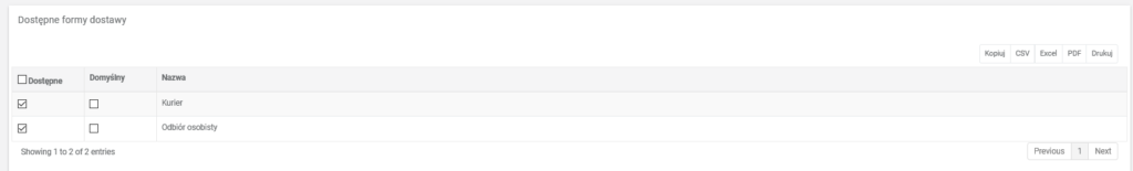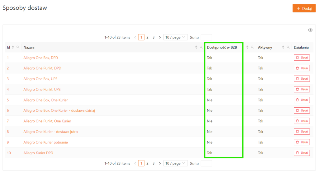 Sposoby dostawy dostępne w B2B można dodawać w Integracje > Sposoby dostaw. Przy każdym sposobie dostawy można oznaczyć, czy jest dostępny w B2B: