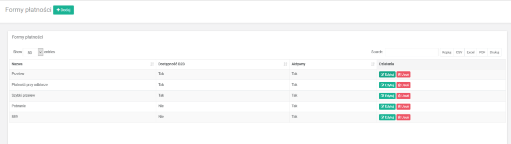 Przy każdej formie płatności można oznaczyć jej dostępność w B2B.