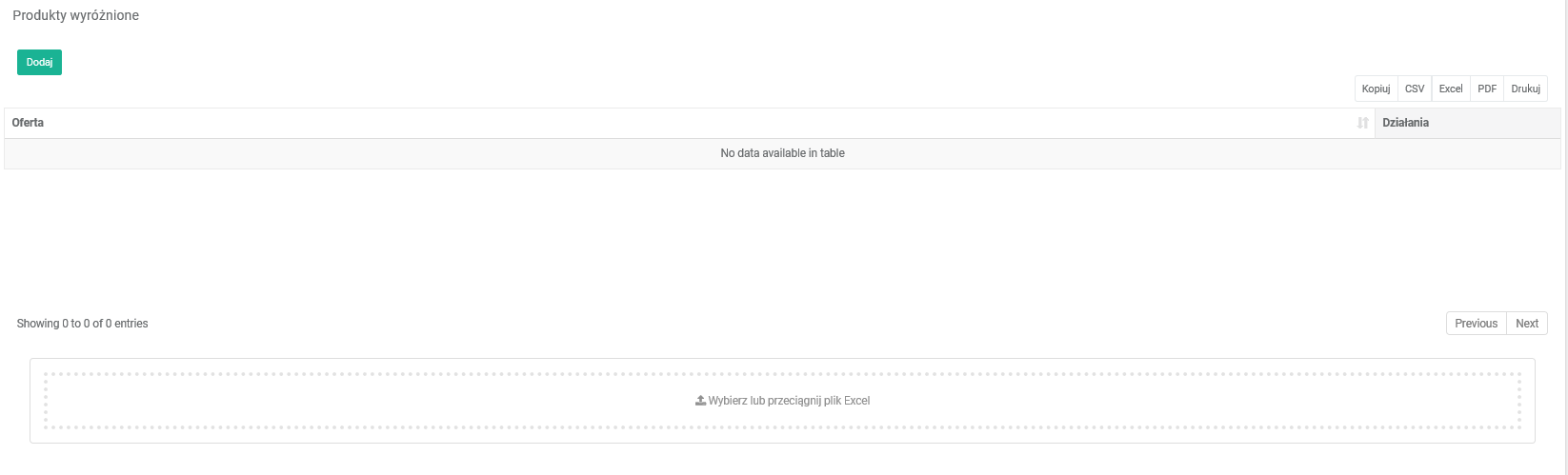 Dostępna jest również opcja wczytania towarów z pliku Excel zawierającego produkty wyróżnione.