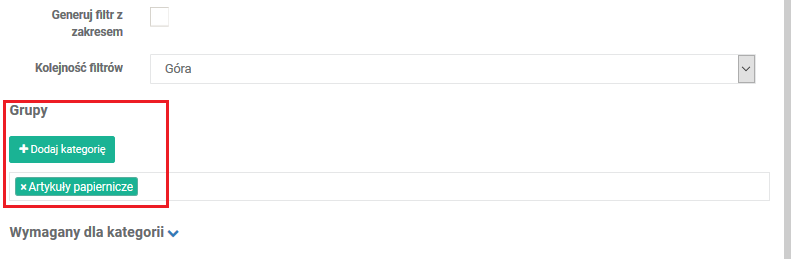 - Wskazujemy w jakich grupach filtr będzie dostępny, można wskazać kilka grup poprzez wielokrotne zaznaczenie (CTRL + kliknięcie).