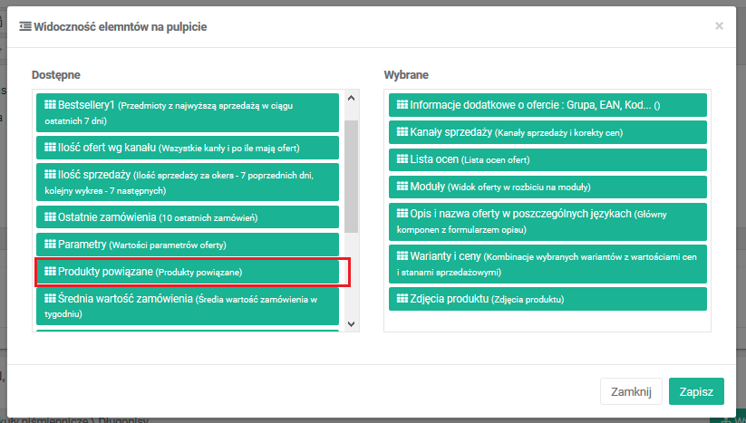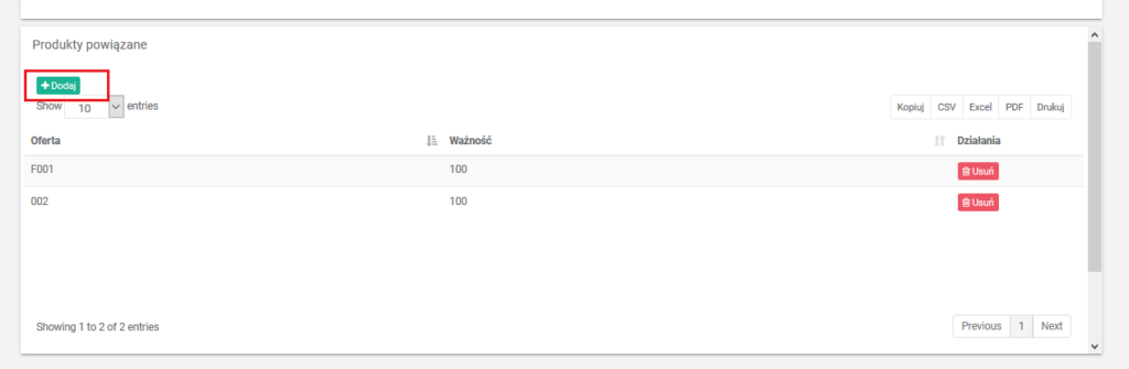 Dostępna jest też opcja dodawania powiązanych produktów za pomocą wczytania pliku Excel.