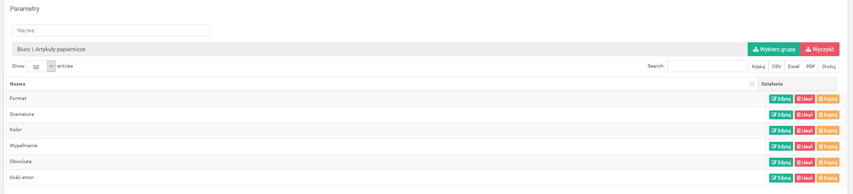 W naszym przykładzie wskazujemy grupę Artykuły papiernicze.