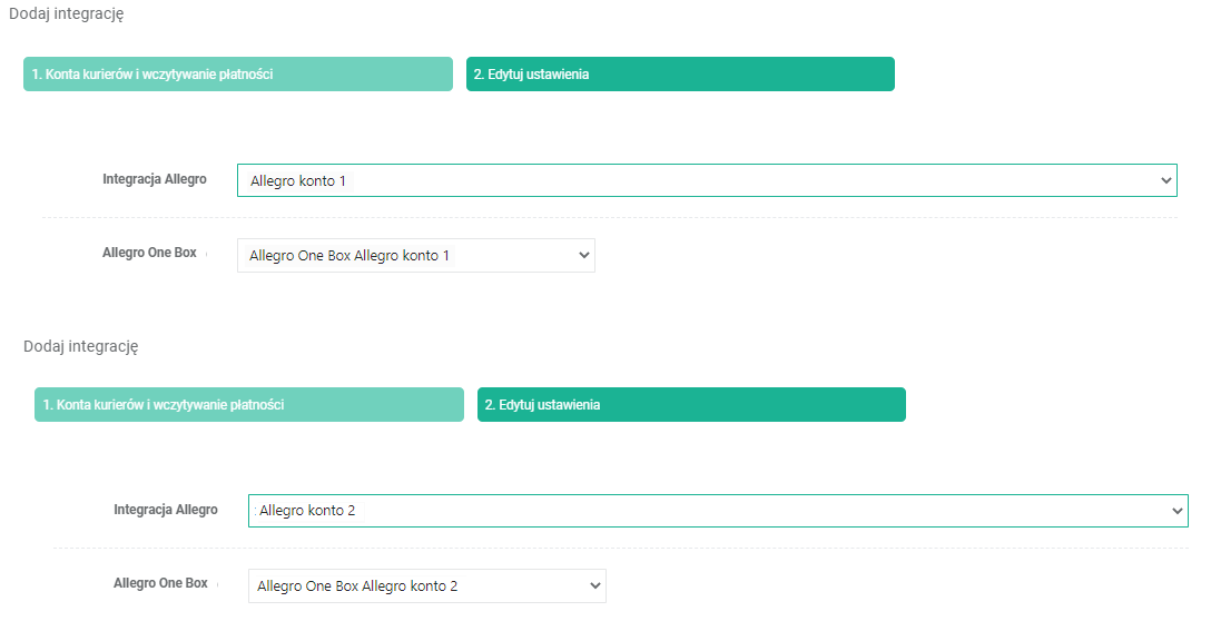 – Jeśli mamy dodane dwa konta Allegro to należy dodać też dwie integracje z Allegro One.