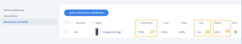 | Edycja zamówienia > Lista przedmiotów zamówienia | Ilość | 29 | Edycja Zamówienia > Dane klienta> Zamówione produkty | lość | 28 | |
