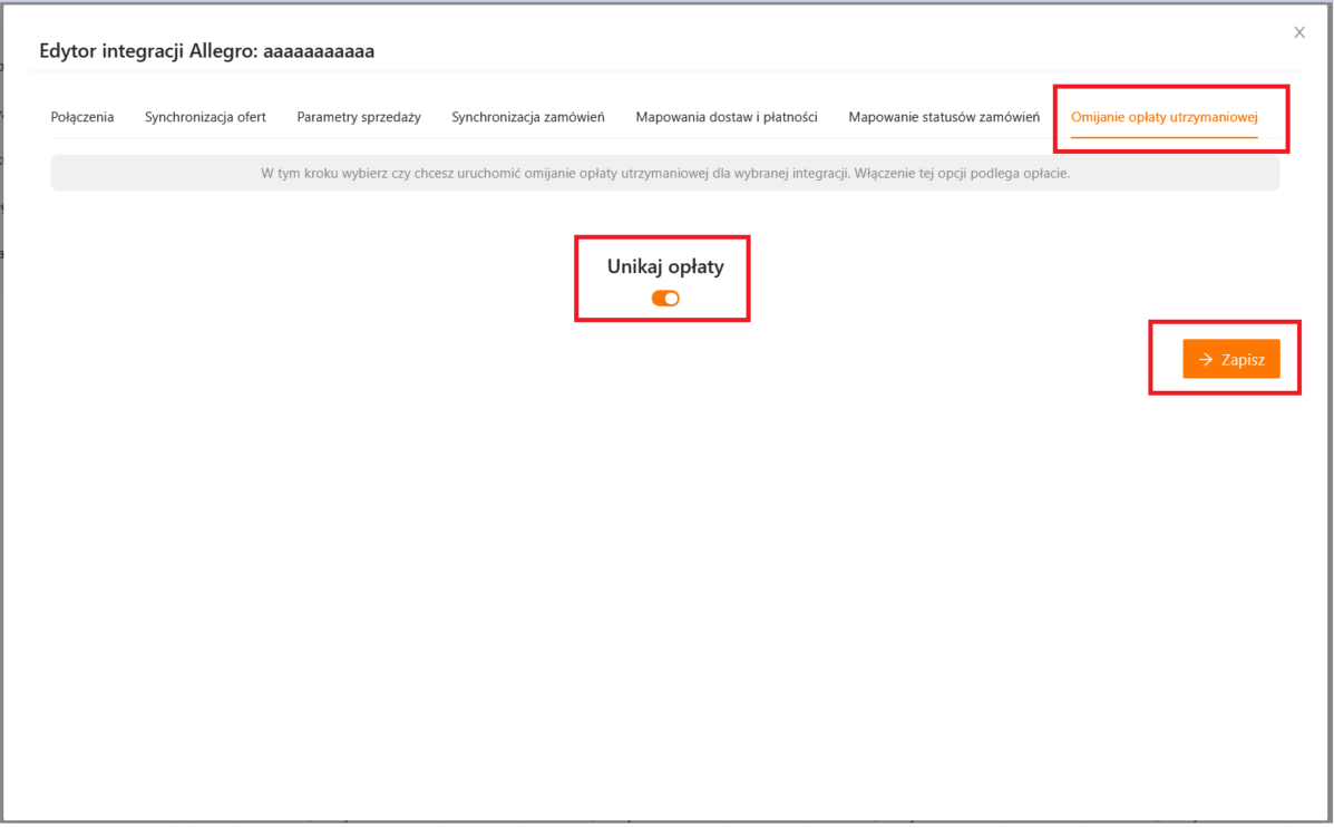 Ominięcie opłaty utrzymaniowej jest możliwe dzięki mechanizmowi, który można aktywować w ustawieniach integracji Allegro.