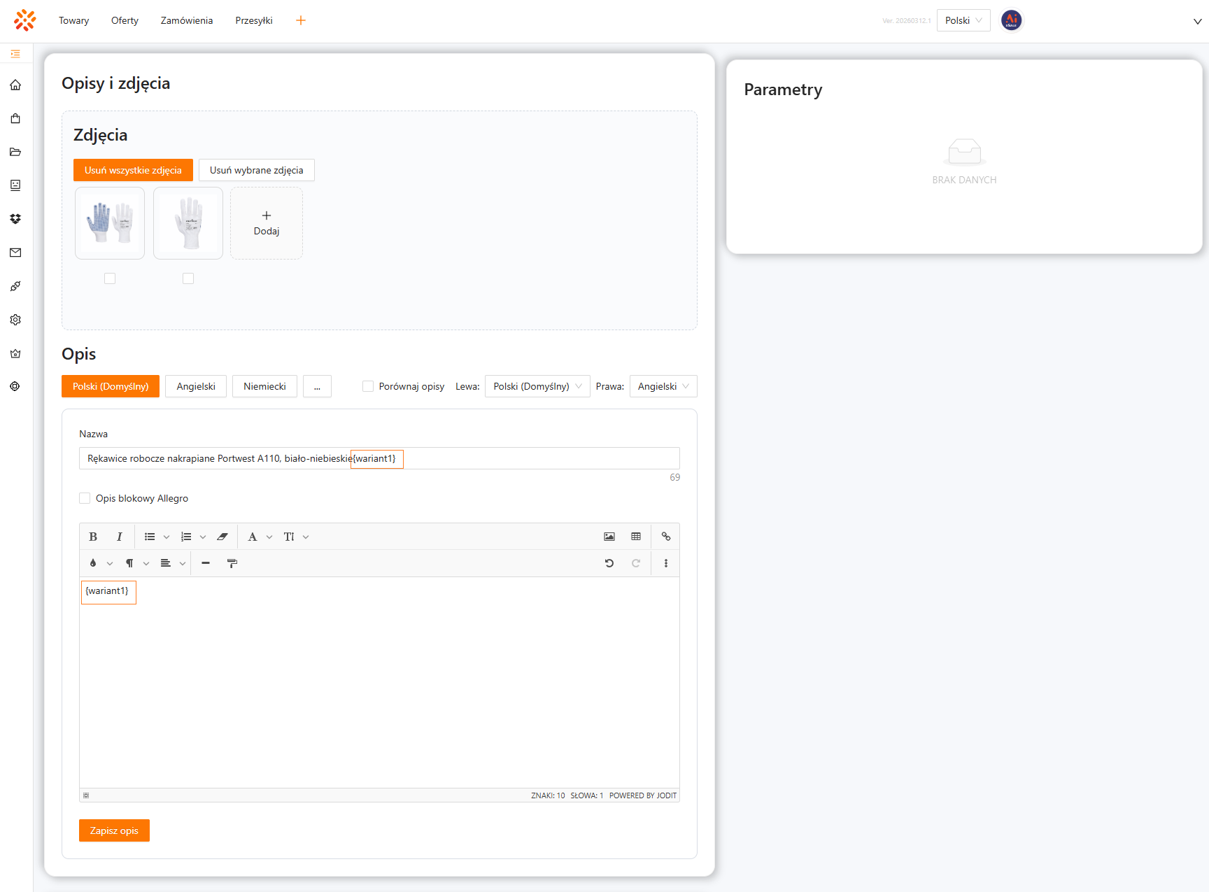 Opis edytujesz w sekcji Opis i zdjęcia na karcie oferty. W tej części możesz: