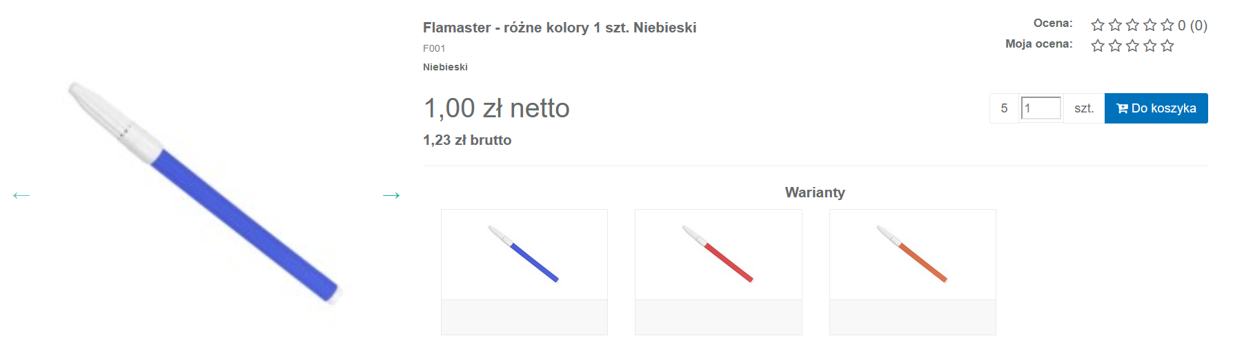 W ofertach wielowariantowych możesz przypisać osobne zdjęcia do każdego wariantu. Dzięki temu klient widzi właściwe zdjęcie po wyborze konkretnego wariantu, na przykład koloru lub rozmiaru.