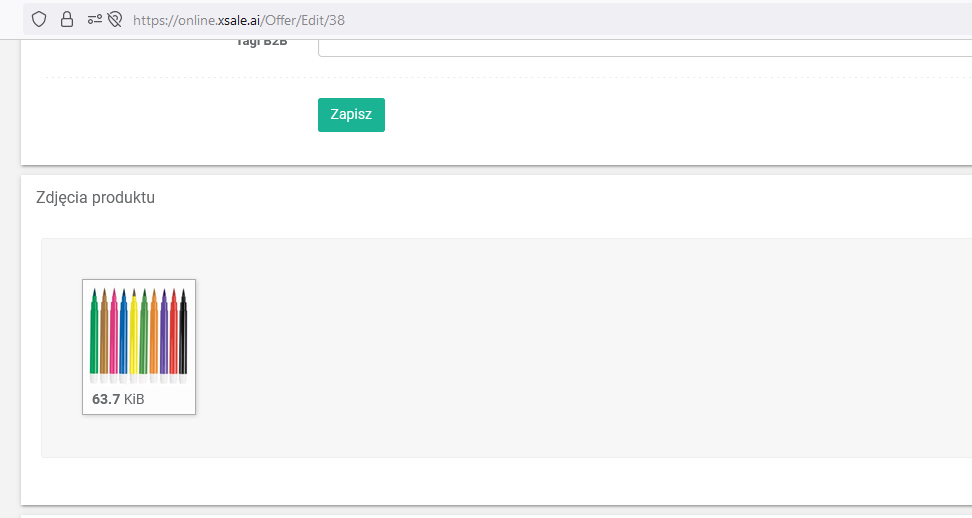 Oferta wielowariantowa po stronie panelu xSale ma przypisane w sekcji Zdjęcia produktu jedno zdjęcie główne: