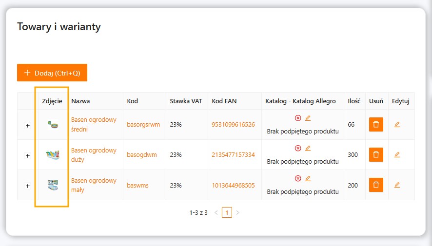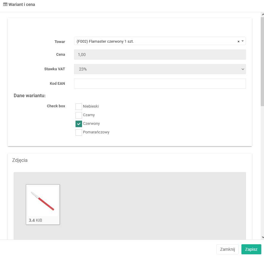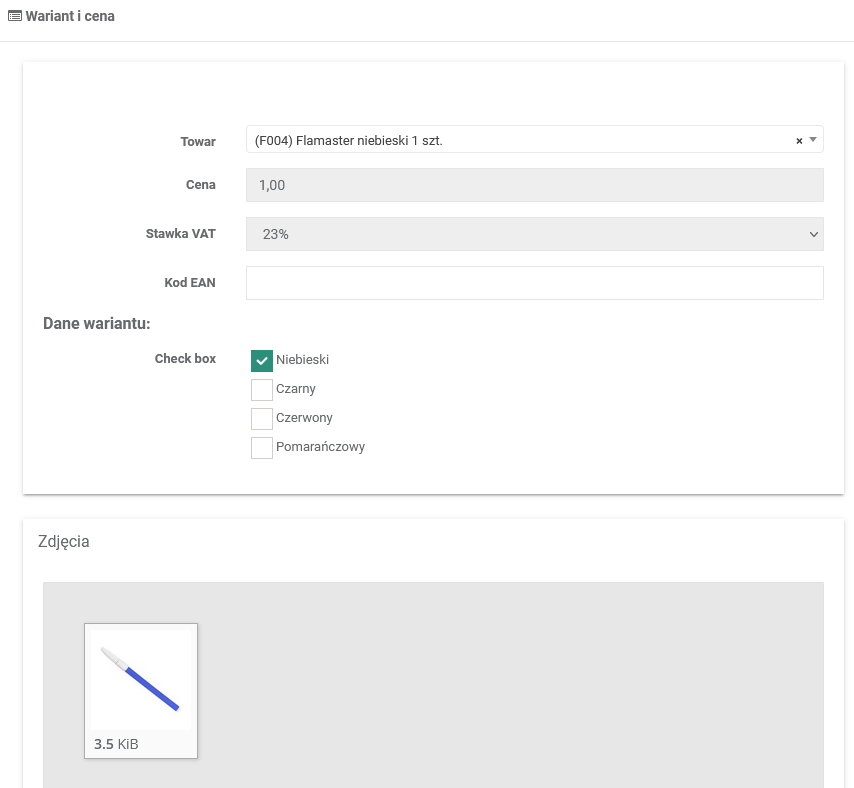 • zdjęć wariantów – przypisywanych do poszczególnych pozycji w tabeli Towary i warianty.