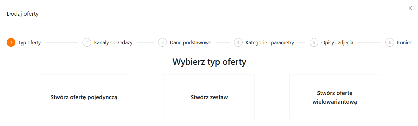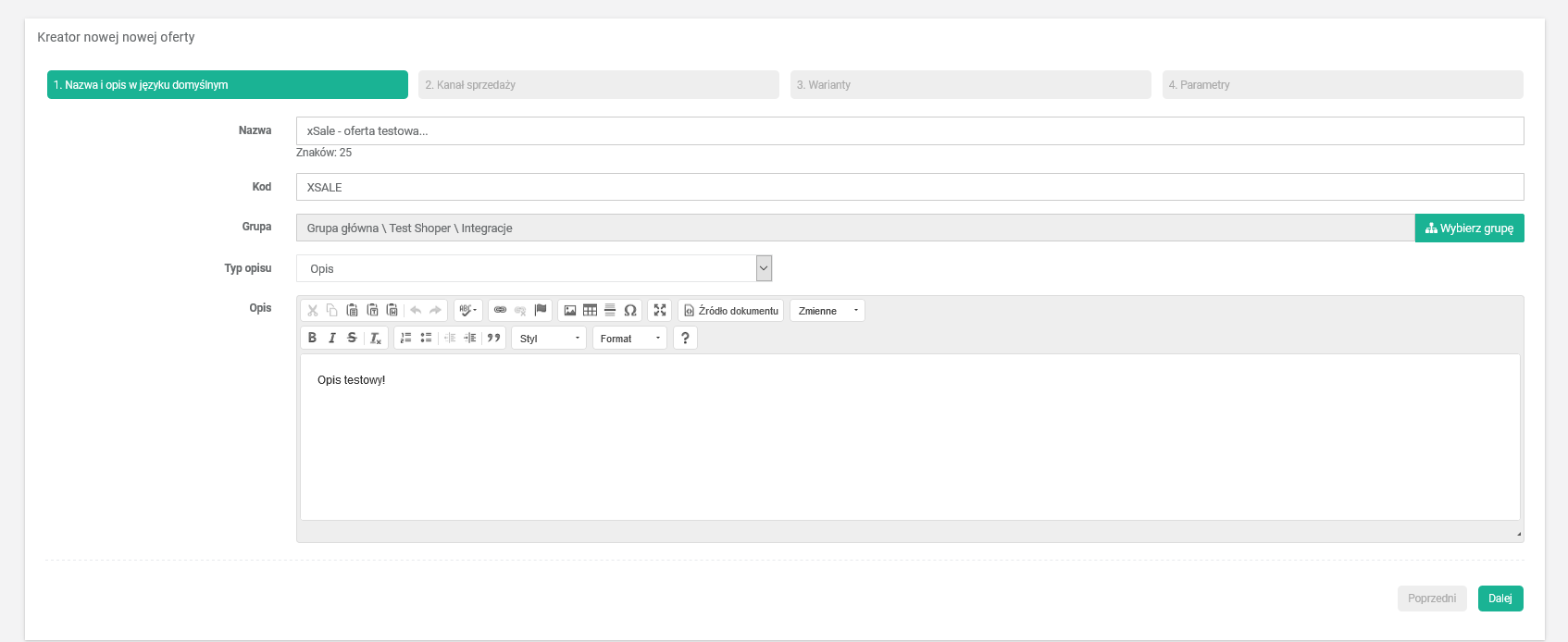 xSale wyświetli kreator, który umożliwia dodanie nowej oferty.