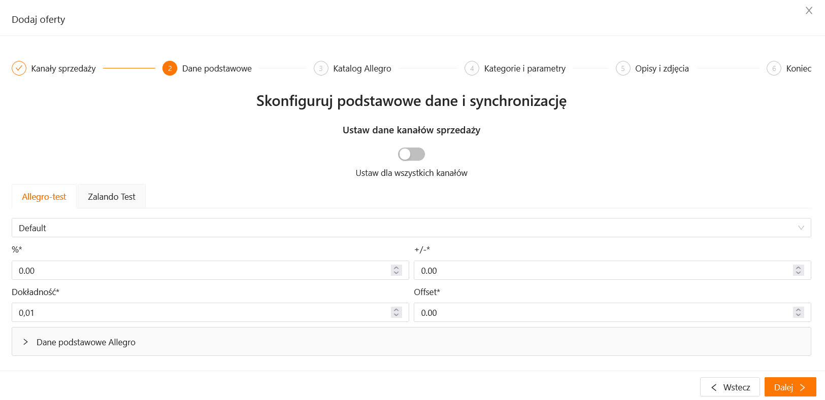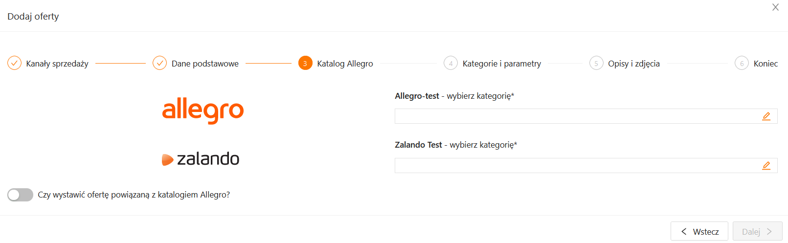- Jeżeli oferta jest wystawiana na Allegro, możliwe jest powiązanie jej z katalogiem Allegro.