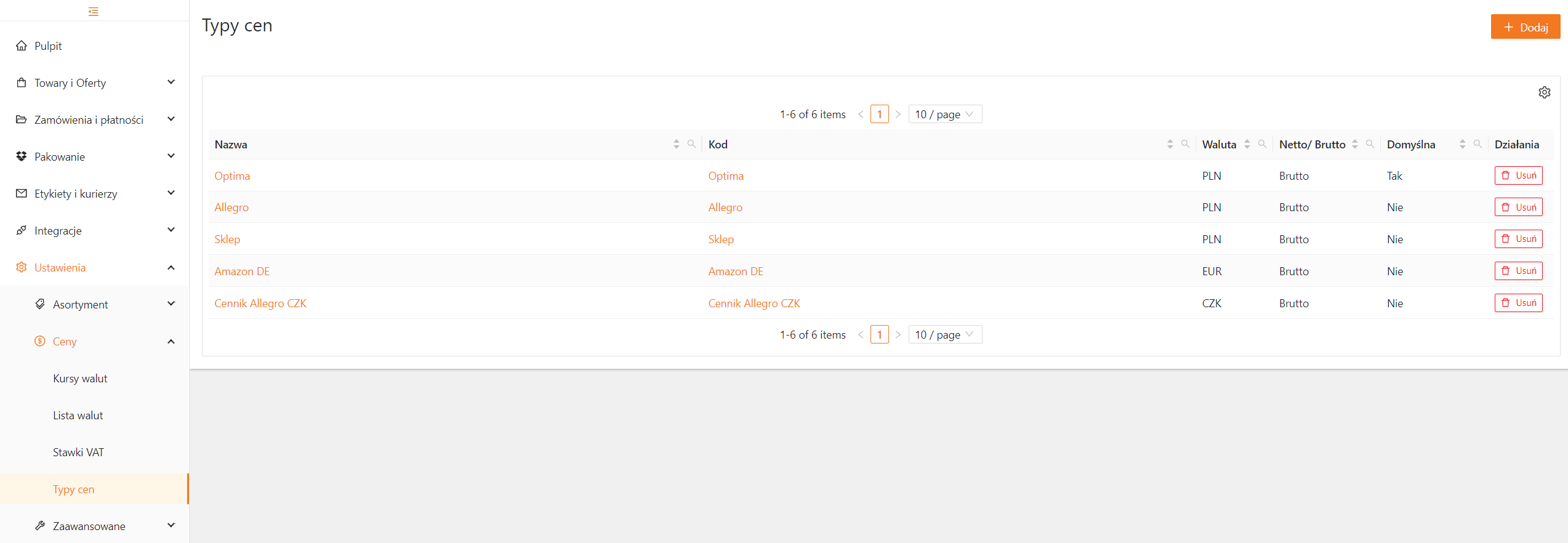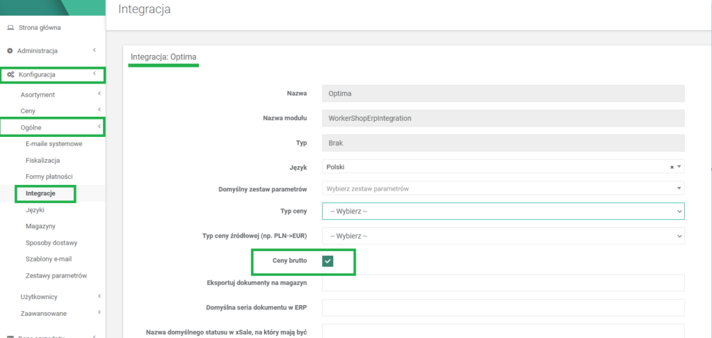 Rodzaj wysyłanej ceny (netto/brutto) jest zgodny z typem ceny w Konfiguracja /-> Ceny /-> Typy cen (pkt 2).