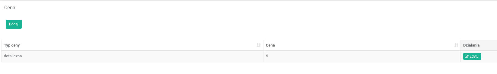 Aby dodać nową cenę, kliknij przycisk +Dodaj i uzupełnij pola formularza.