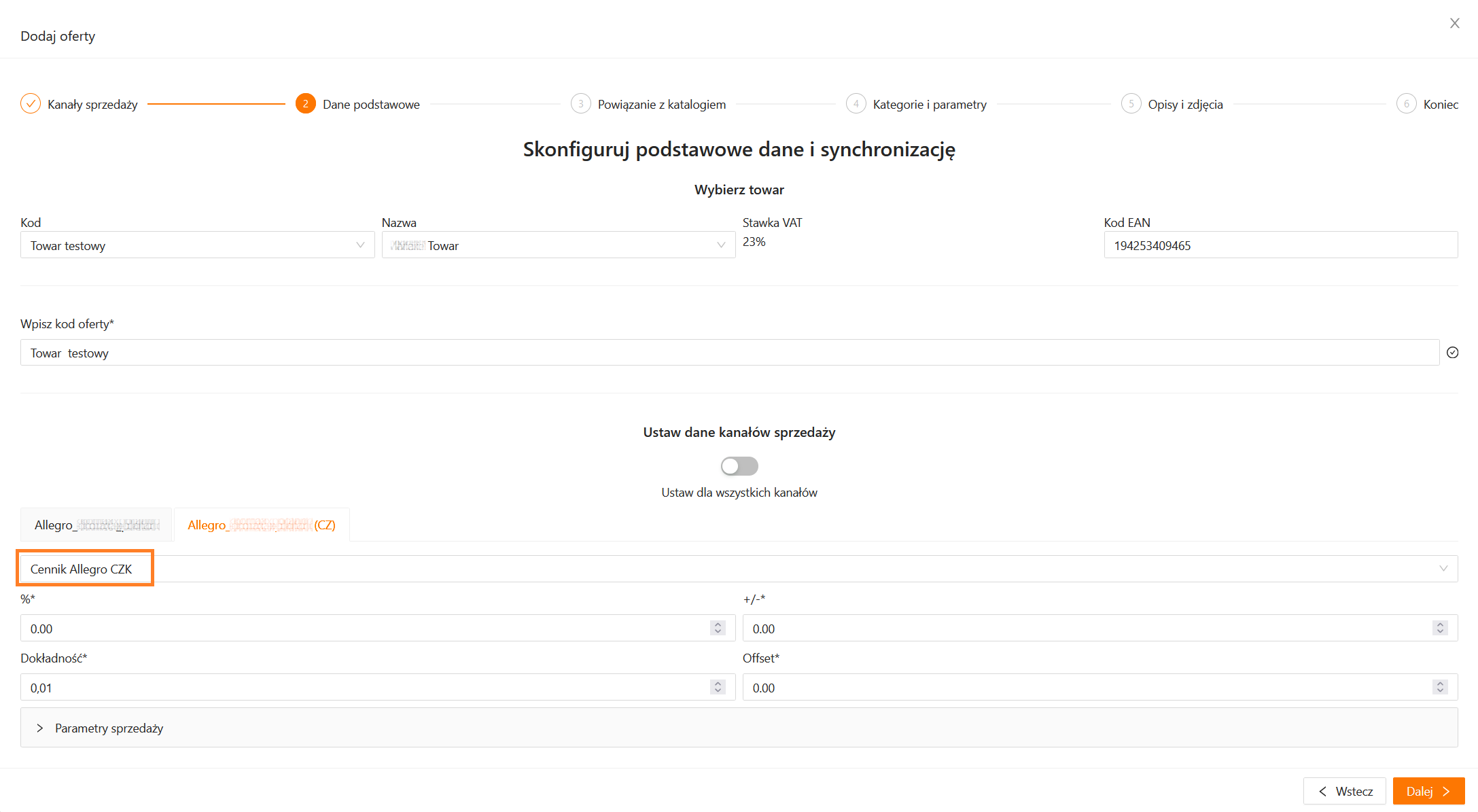 Kreator nowej oferty Allegro na dodatkowym rynku