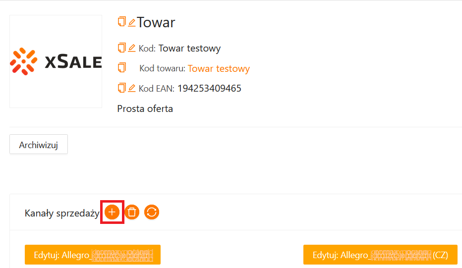W celu dodania kanału sprzedaży do istniejącej oferty, należy wejść w ofertę i kliknąć w przycisk „+”.