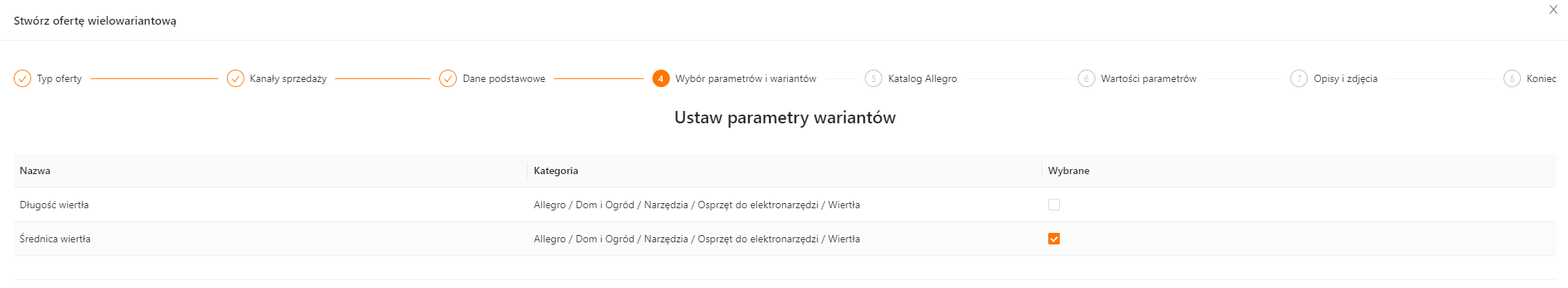 Ten krok pojawia się tylko jeśli w kroku 1 zostanie wybrany typ oferty wielowariantowa.
