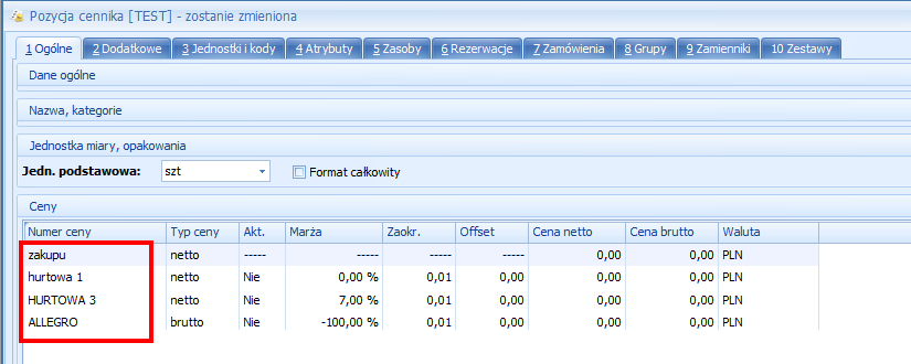 Wskaż nazwę cennika z systemu ERP, który chcesz zaimportować do xSale i używać do wystawiania produktów na Allegro. Wartość ceny z cennik wskazanego przy wystawianiu produktu będzie widoczna na aukcji. Można zaimportować wiele cenników, dodatkowo do tych cenników można dodawać rabaty i marże bezpośrednio w xSale.