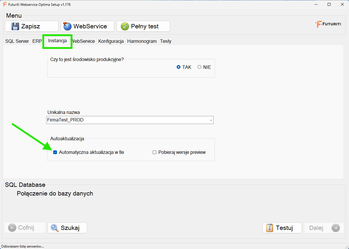 - Po uruchomieniu ustawień WebService przejdź do zakładki Instancja.