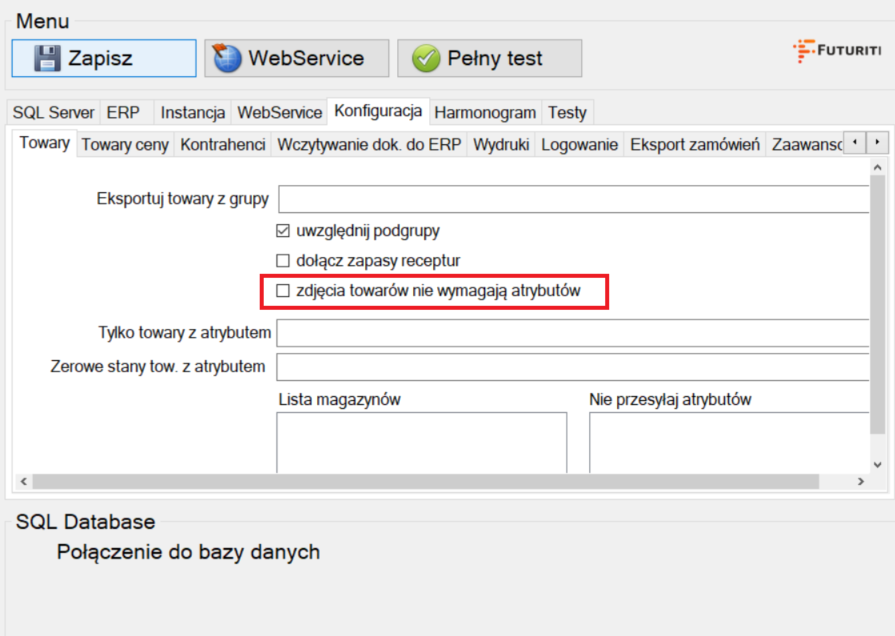 Następnie przechodzimy na zakładkę Konfiguracja > Towary i zaznaczamy check-box „zdjęcia towarów nie wymagają atrybutów”.