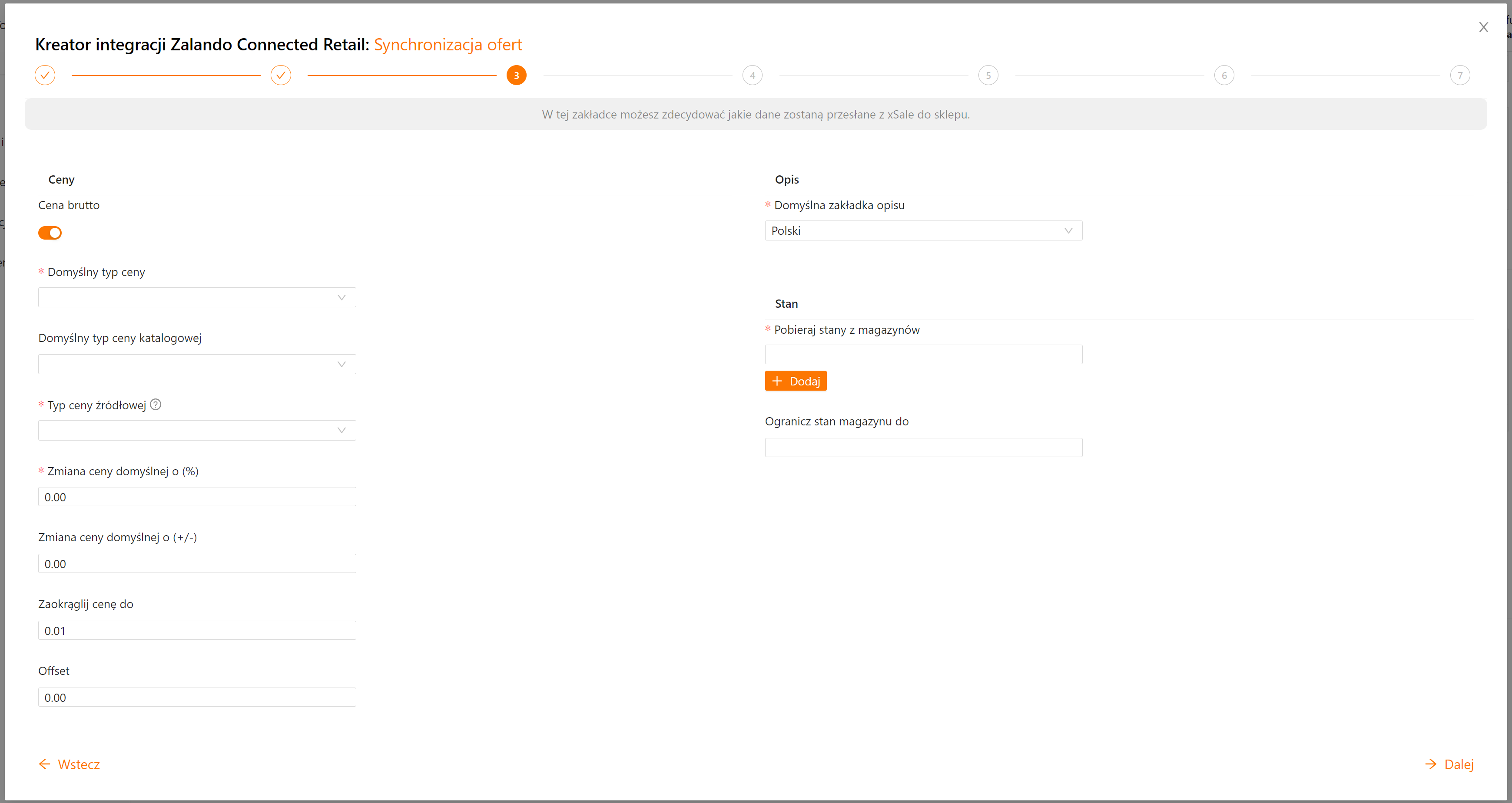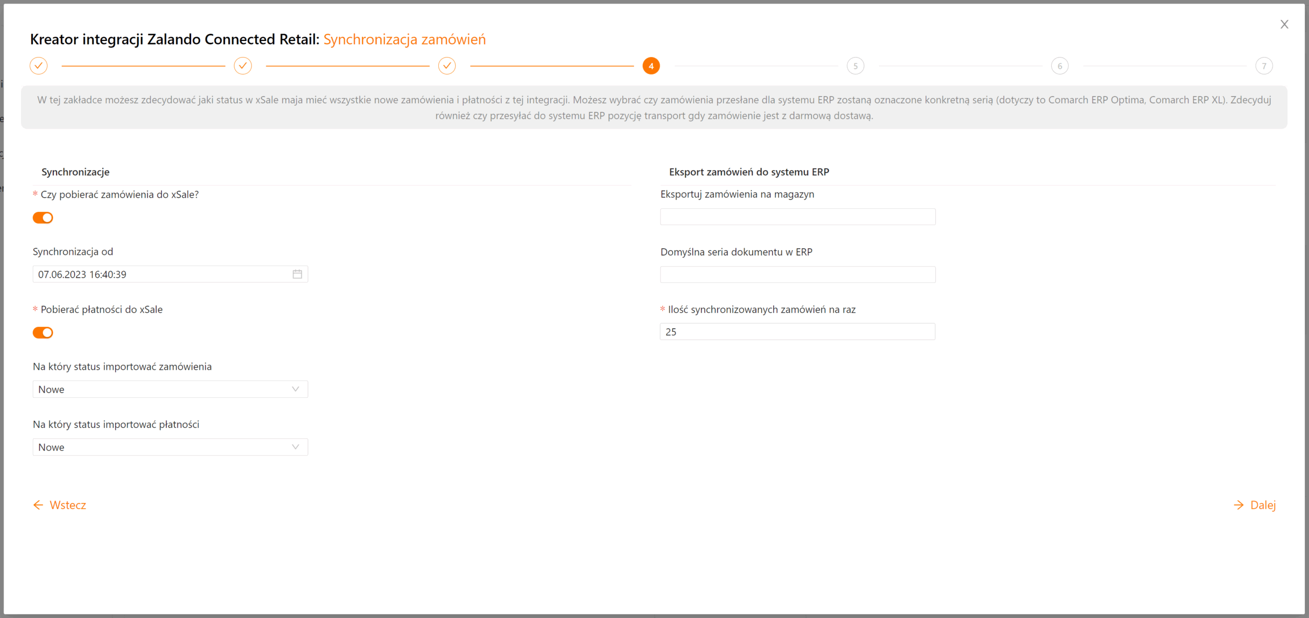 Ustawiamy opcje dotyczące synchronizacji zamówień z Zalando Connected Retail do xSale a także do ERP.