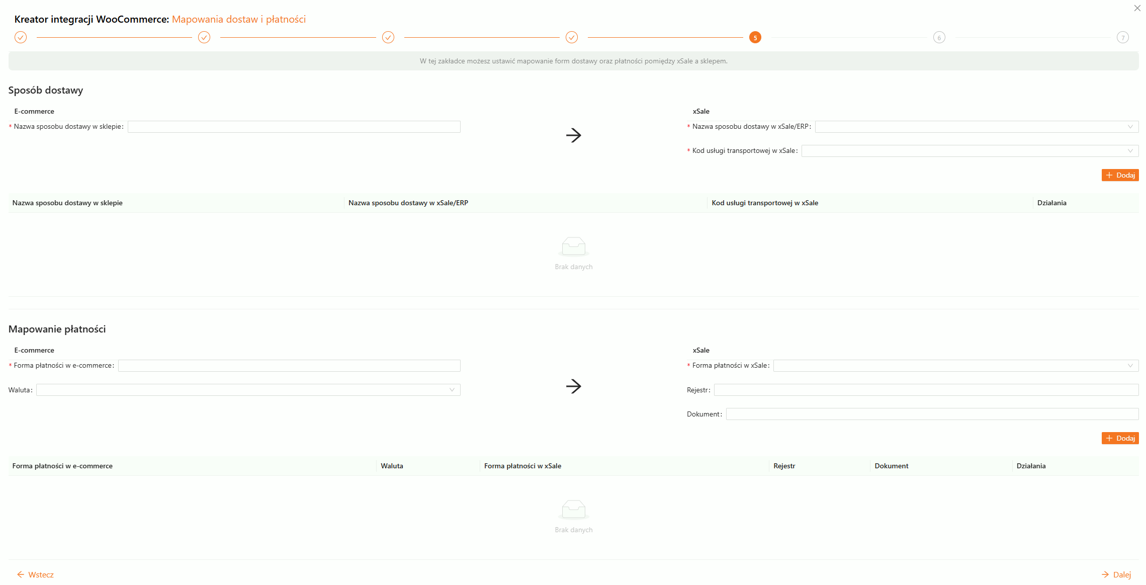 Krok 5. Mapowanie dostaw i płatności