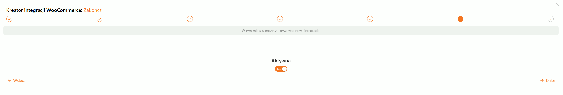 W kolejnym kroku aktywujesz integrację. Przełączenie flagi Aktywna na TAK pozwala przejść do ostatniego etapu, czyli importu ofert.