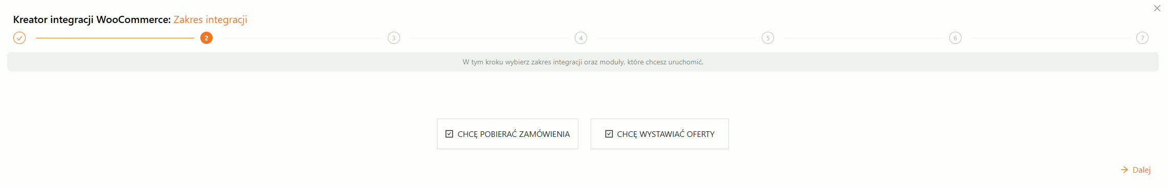 W drugim kroku określasz zakres integracji, czyli czy chcesz: