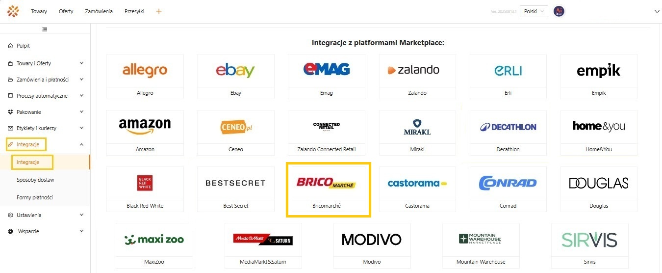 - W sekcji Integracje z platformami Marketplace należy wyszukać tej z logo i nazwą Bricomarché