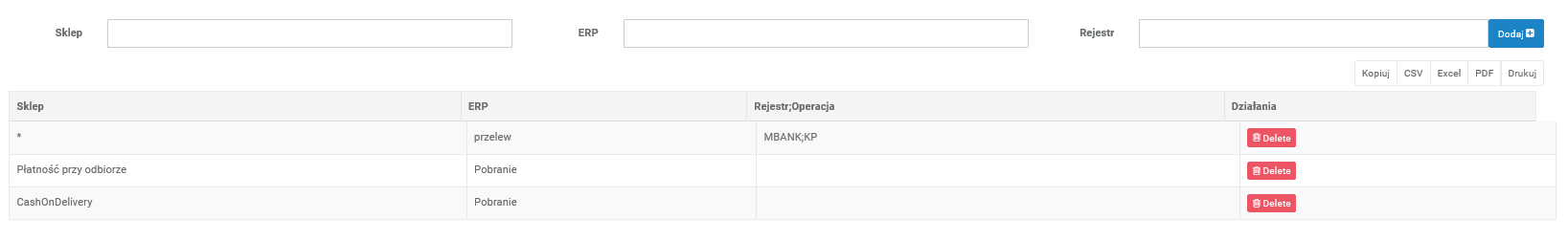 - Poniżej przykład poprawnie uzupełnionych mapowań płatności.