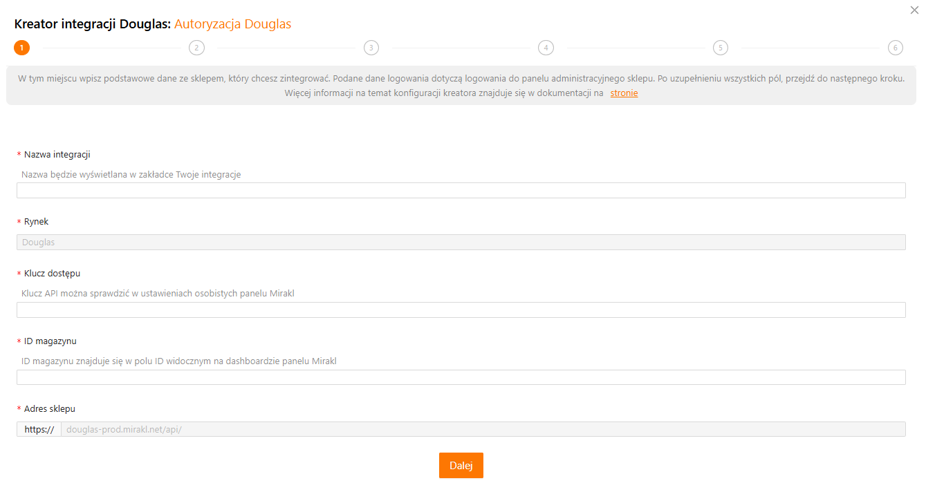Dodanie integracji z Douglas jest możliwe za pośrednictwem kreatora integracji Mirakl, w przygotowanej wersji dla marketplace Douglas.