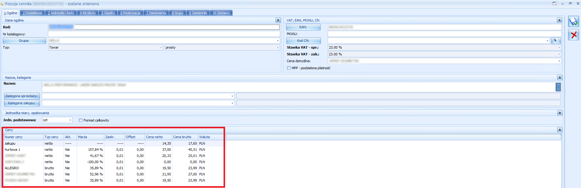 W ERP masz wiele cenników na towarze np. Zakupu, hurtowa, detaliczna, Allegro, Esklep itp. Wpisz jaki cennik z ERP ma być wysyłany do eBay. Cena ta będzie prezentowana na stronie i w niej Twoi klienci będą dokonywać zakupu.