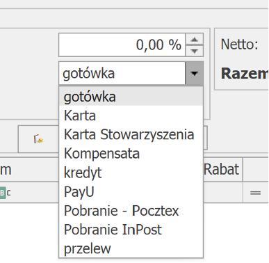 Płatność ERP jest na zamówieniu w ERP (np. RO – Comarch Optima, ZS – Comarch XL, ZK – Subiekt)