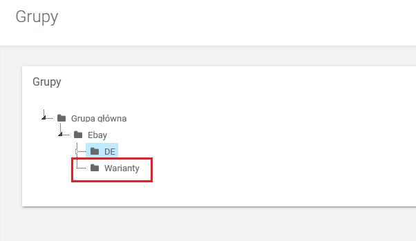 - W polu Grupy dodajemy grupę Warianty z kategorii Ebay.