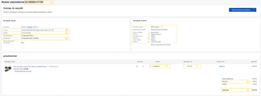 Szczegółowy zakres danych przesyłanych z eBay do xSale: