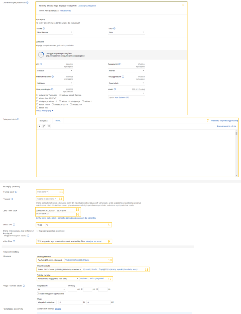 Szczegółowy zakres danych przesyłanych z xSale do eBay