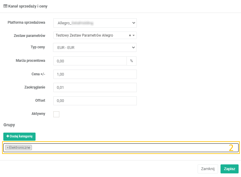 Kanały sprzedaży i ceny > Grupy Grupy 2 Informacje o ofercie Kategoria 2 Można przesłać tylko jedną kategorię