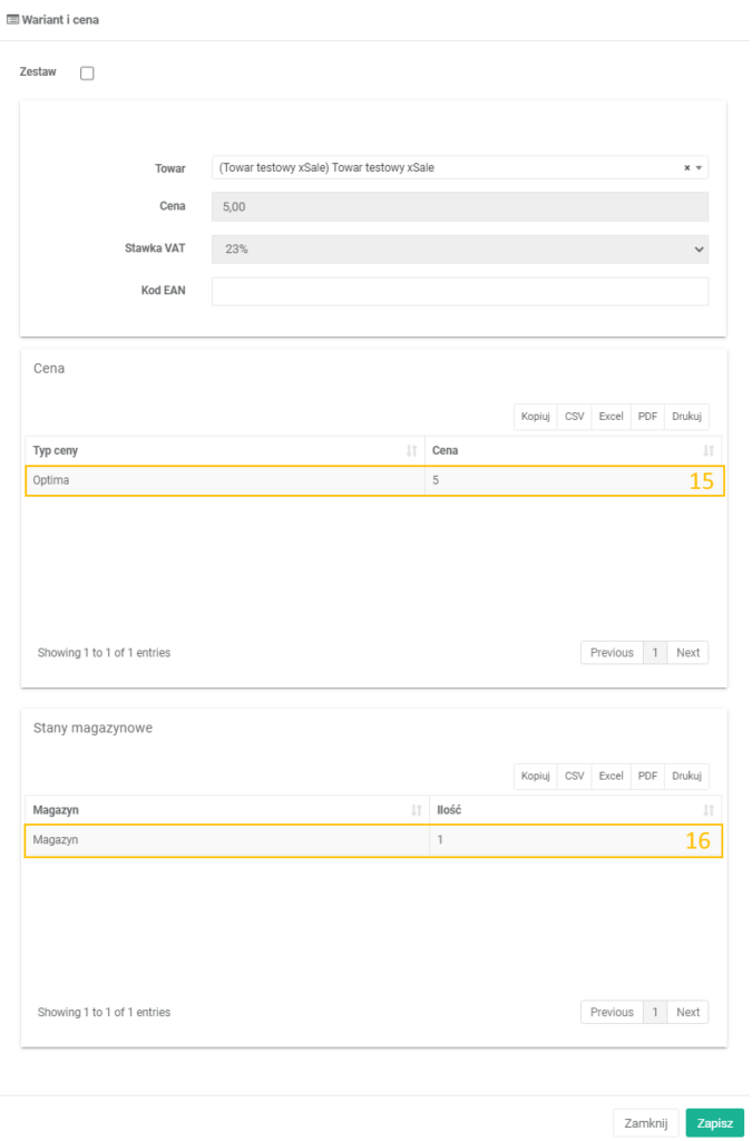 Warianty i cena > Cena; Warianty i cena > Zestaw > Cena Cena; Stała cena 20 Szczegóły sprzedaży > Warianty Cena 20 Dla oferty wielowariantowej