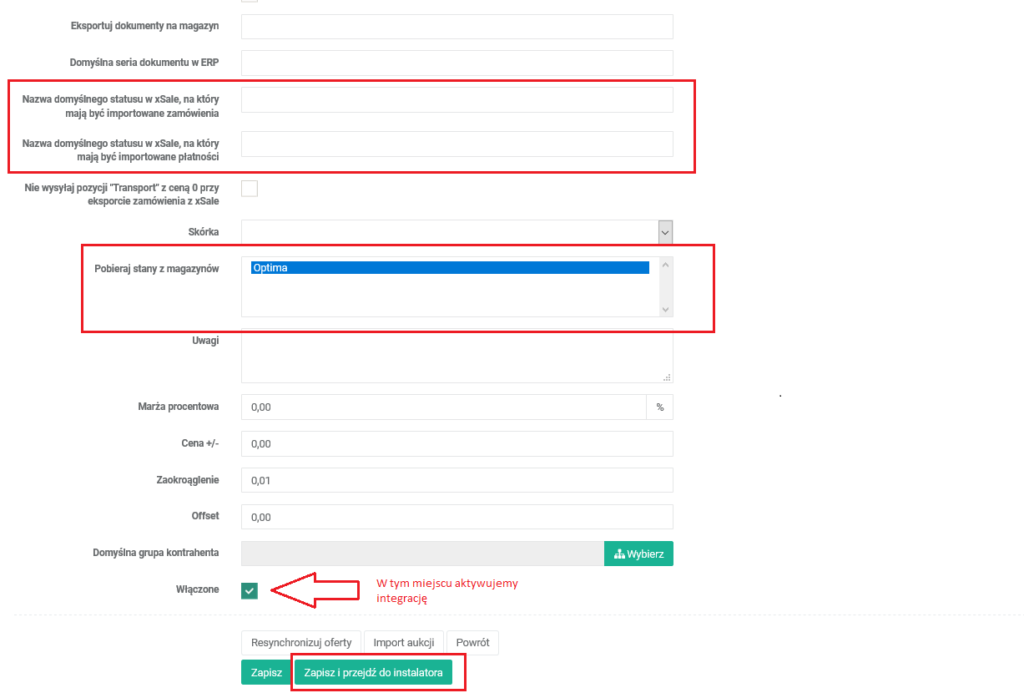 Dodatkowo zaznaczamy magazyny z których integracja ma pobierać stan.