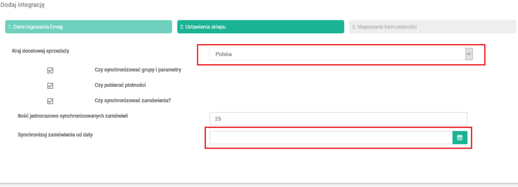 - Ustawiamy datę od kiedy synchronizować zamówienia