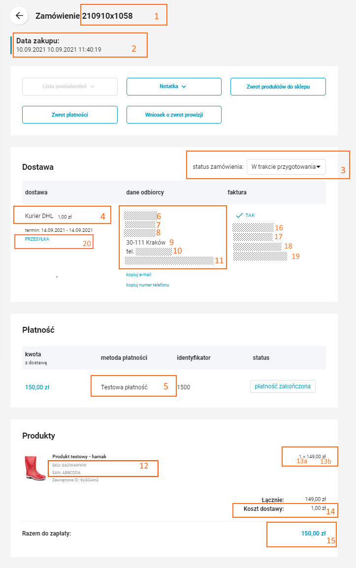 | Edycja zamówienia > Formularz zamówienia | Status | 2 | Sprzedaż na ERLI.pl -> Zamówienia -> Lista zamówień -> Szczegóły -> Dostawa | Status zamówienia | 3 | |