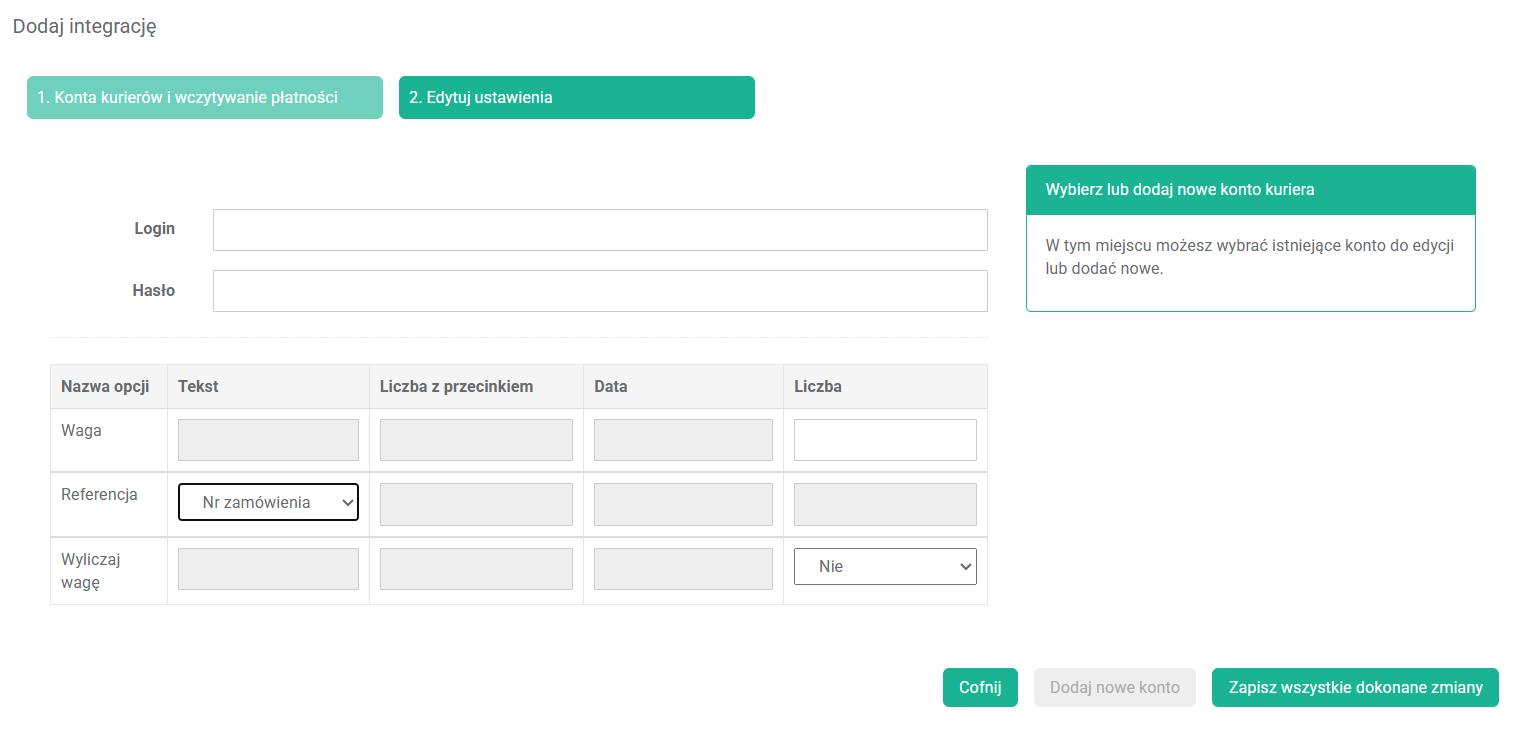 Oprócz danych logowania, skonfiguruj domyślne ustawienia, które będą wykorzystywane przez xSale podczas tworzenia przesyłek: