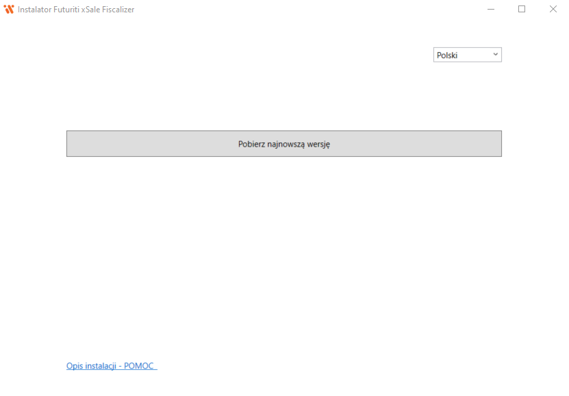• Uruchom plik FuturitixSaleFiscalizerInstaller.exe i kliknij Pobierz najnowszą wersję. Jeżeli będzie dostępna nowsza wersja po uruchomieniu przycisku instalator automatycznie pobierze i zainstaluje aktualną wersję.