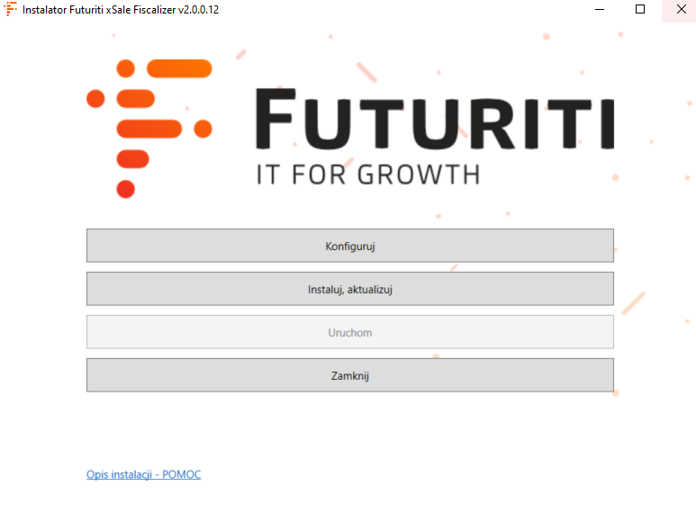 • Przycisk Uruchom w instalatorze uruchamia program Futuriti xSale Fiscalizer.