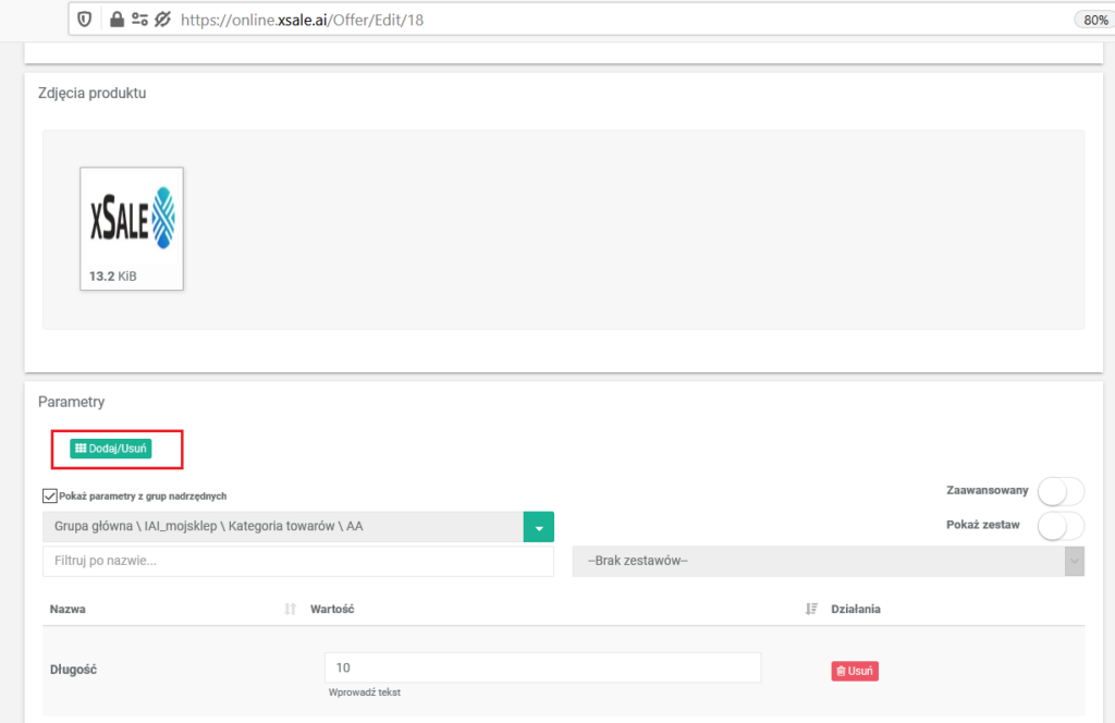 W xSale jest możliwe dodawanie parametrów do produktów i przesyłanie ich na kartę towaru do IAI. Aby było możliwe uzupełnianie parametrów na ofertach synchronizowanych do IAI należy wcześniej dodać odpowiednie parametry w konfiguracji xSale.