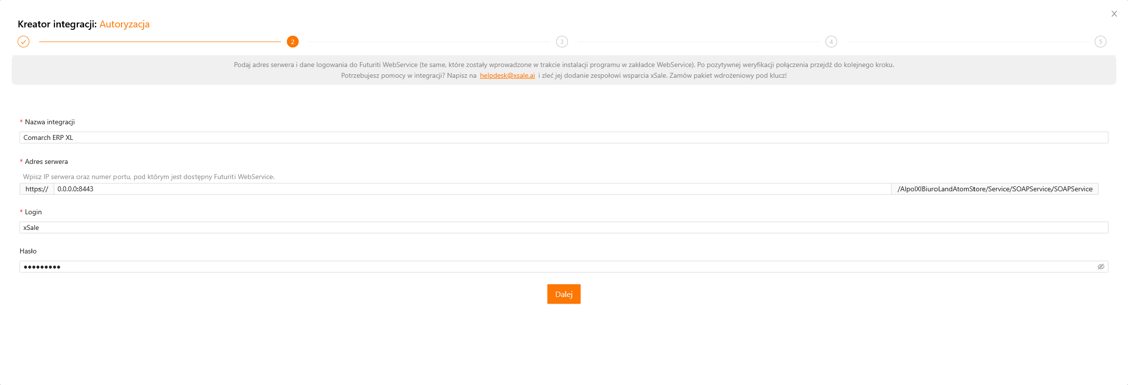 Po wybraniu integracji z Comarch ERP XL, system przeniesie Cię do konfiguratora.