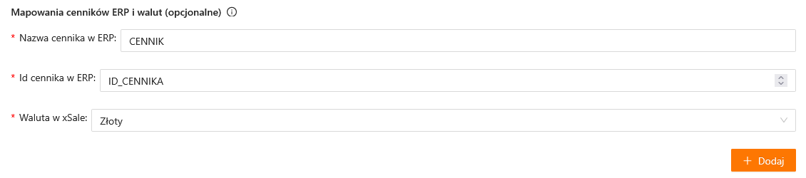 Jeśli korzystasz w ERP z cenników w różnych walutach lub gdy cenniki nie zostały poprawnie zaimportowane do Xsale, możesz uzupełnić mapowania ręcznie.