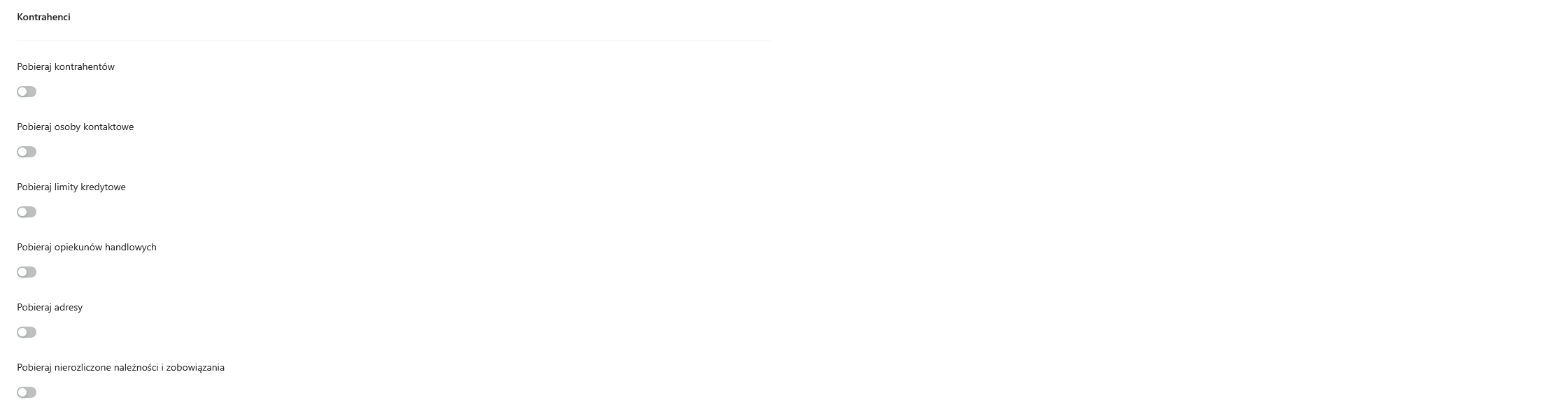W ostatnim kroku kreatora skonfigurujesz ustawienia synchronizacji kontrahentów. Możesz ustalić jakie dane kontrahentów pobierzesz z Comarch XL do xSale. Jeśli nie potrzebujesz specyficznych ustawień synchronizacji danych kontrahentów, pozostaw tę sekcję z ustawieniami domyślnymi, aby ograniczyć transfer danych, co wpłynie na szybsze działanie systemu.