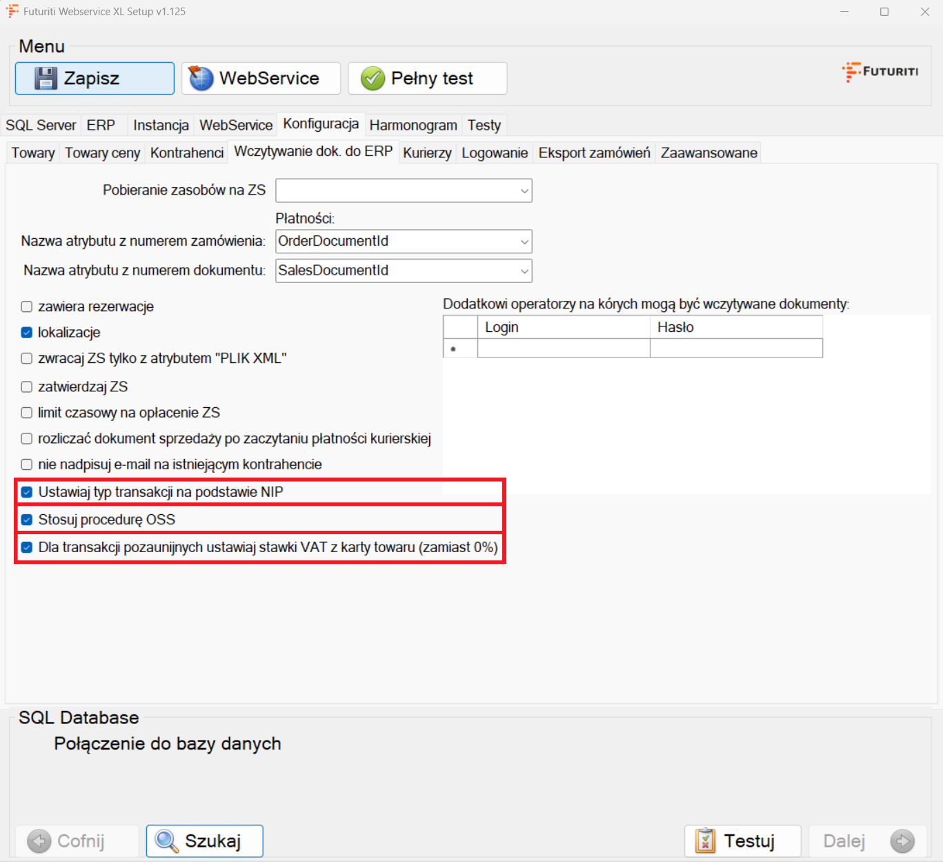 Aby uruchomić funkcjonalność, w instalatorze Webservice XL, należy zaznaczyć opcje konfiguracyjne podczas instalacji na zakładce Konfiguracja/Wczytywanie dok. do ERP:
